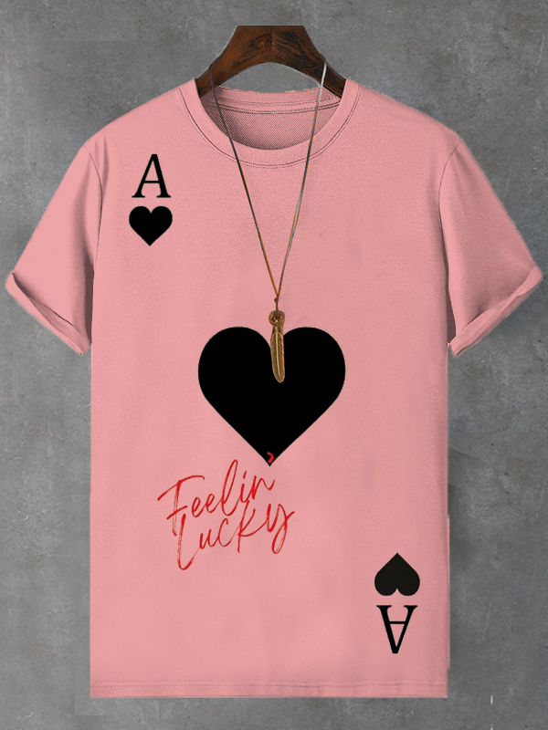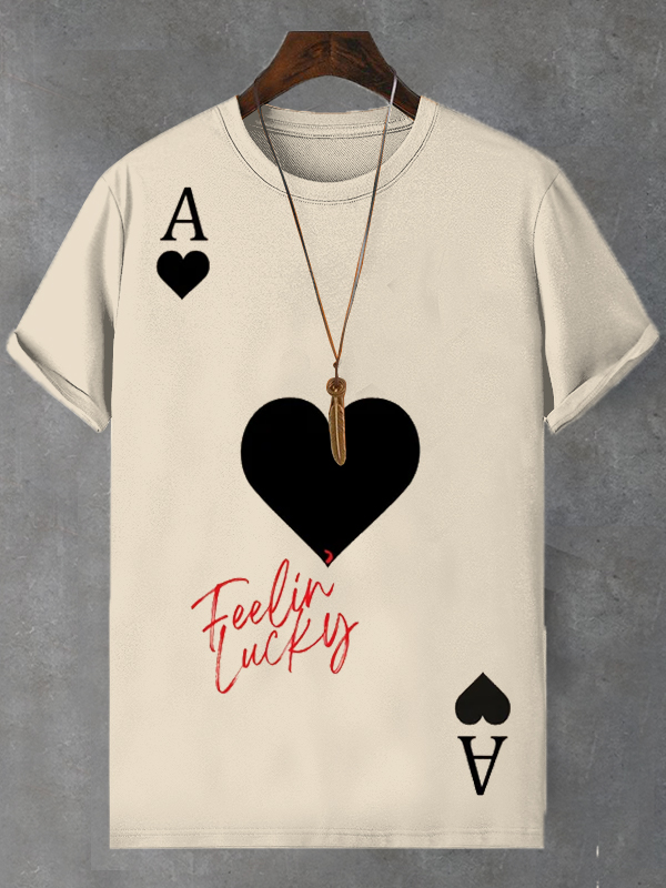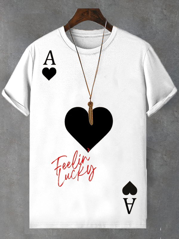 <💯Cotton>Men's Ace Of Hearts Playing Cards Feeling Lucky Art Print Cotton Casual T-Shirt
