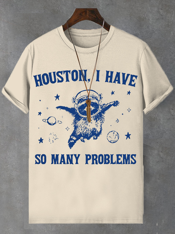 • <💯Cotton>Men's Houston I Have So Many Problems Astronaut Cat Art Print Cotton Casual T-Shirt