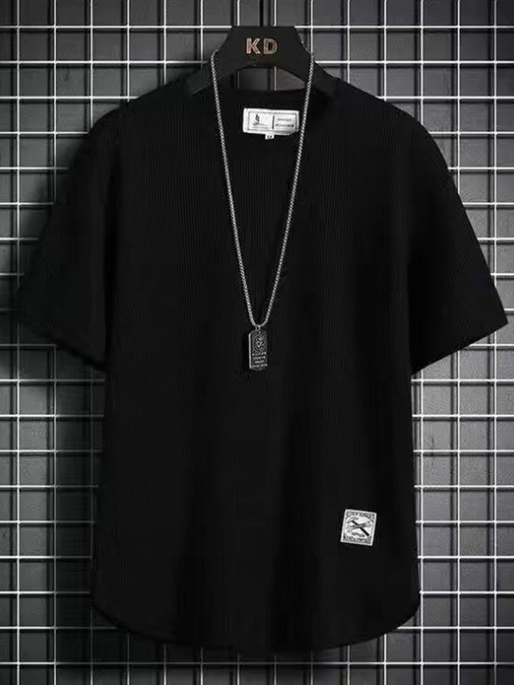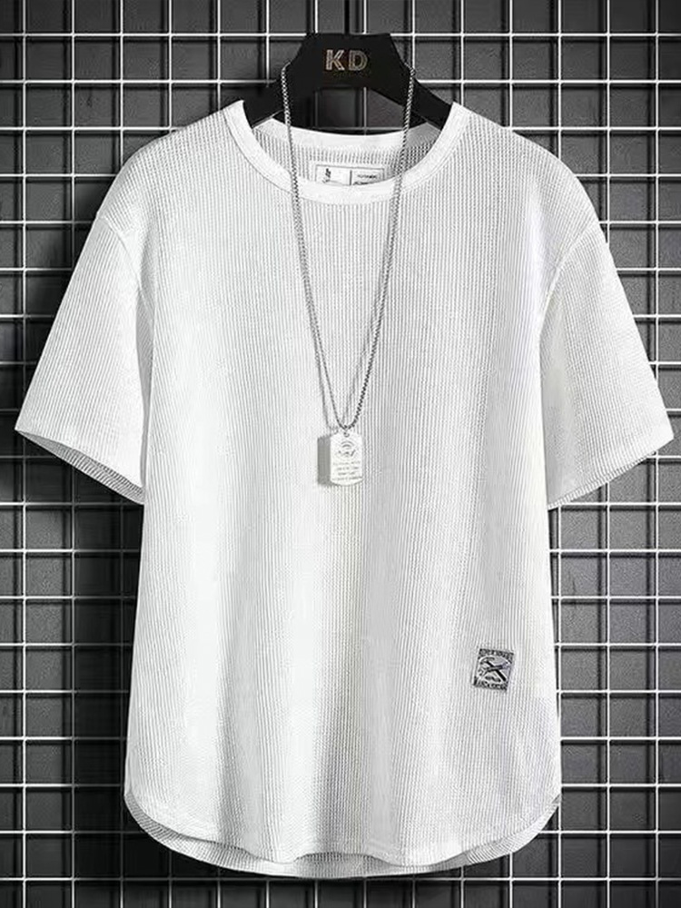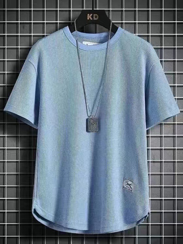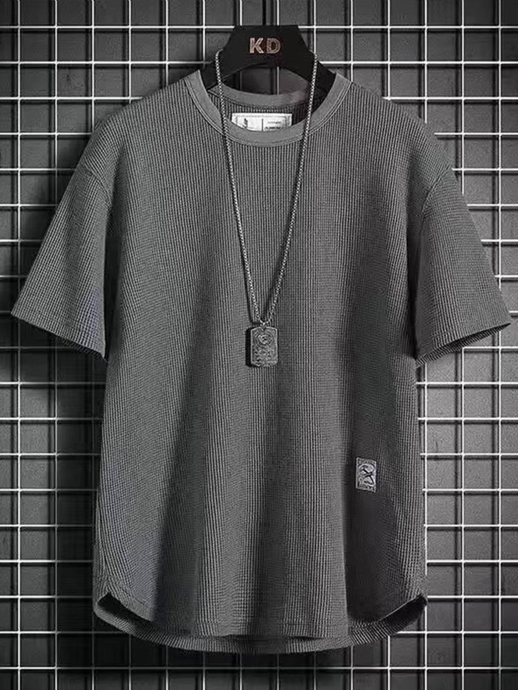 • Men's Solid Waffle Textured Crew Neck Loose T-Shirt